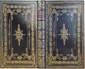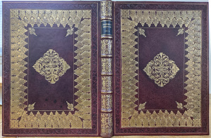 The image on the cover is a replication of one of the book's illustration executed with 32 separate onlays of niger goat.